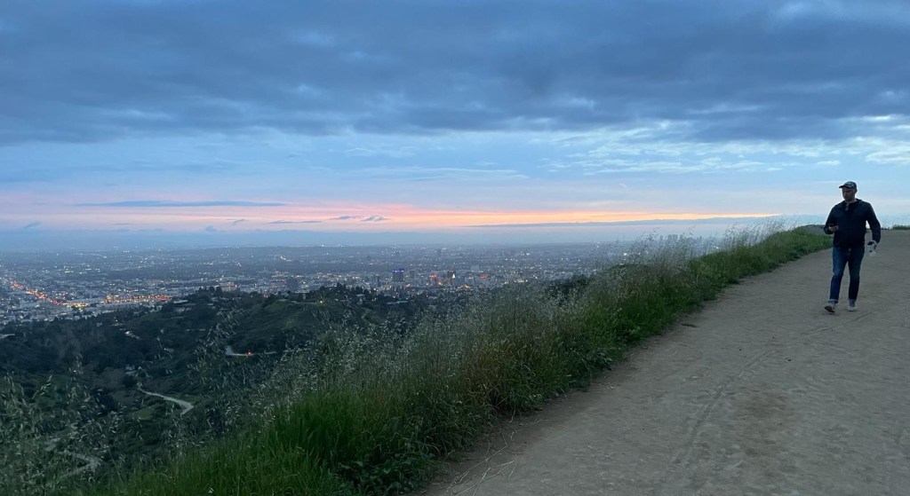 (Above – your correspondent in Griffith Park at dusk, photo courtesy of his brother.)