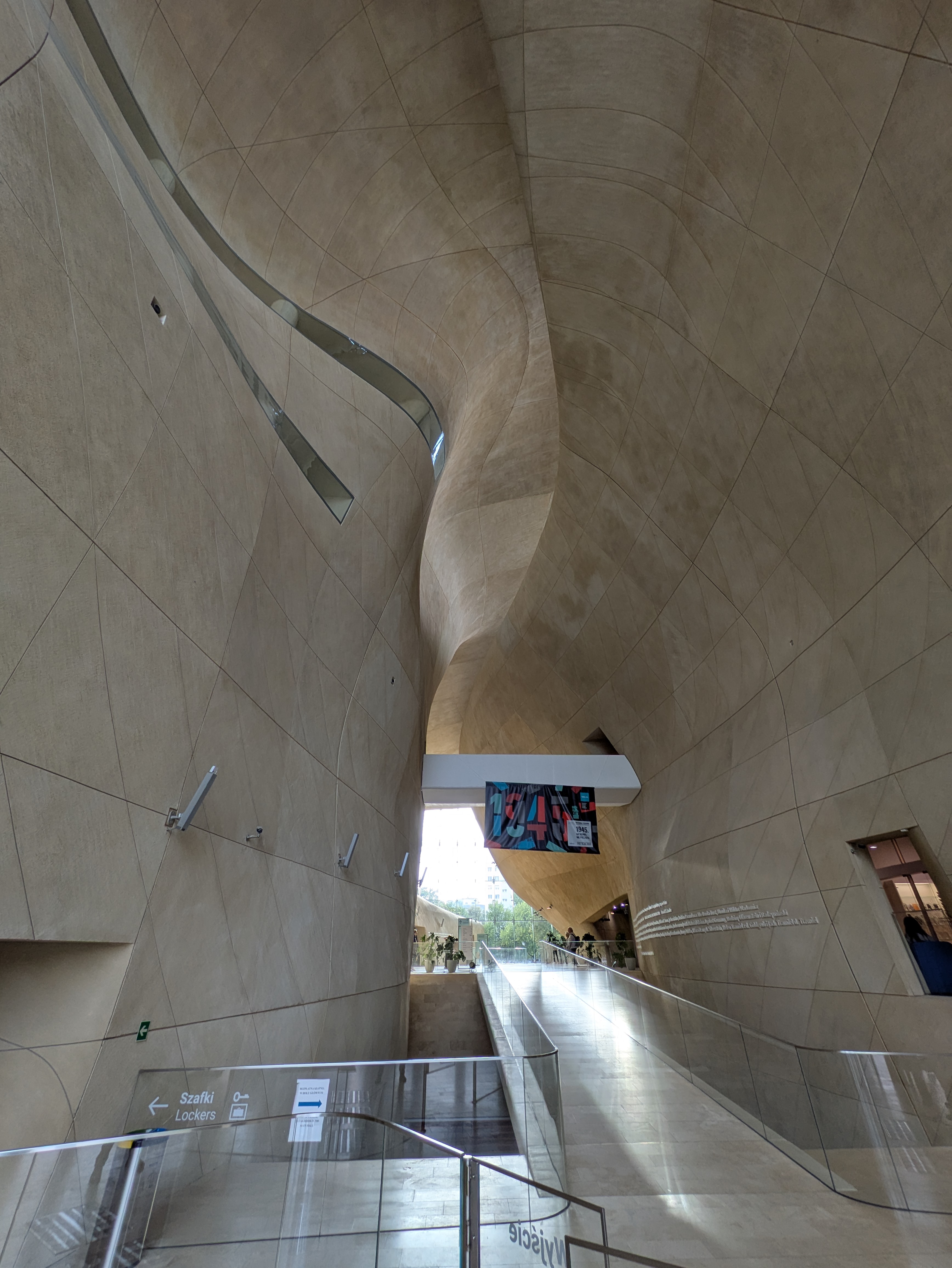The tour terminates at POLIN Museum of the History of Polish Jews. POLIN has free admission on Thursdays, but this outstanding museum is worth every penny of the entrance fee. Past the (understandable) security check, the entrance hall alone is breathtaking, a welcoming path hewn between gracefully flowing, massive sand-coloured walls, evoking the deserts of Judea.