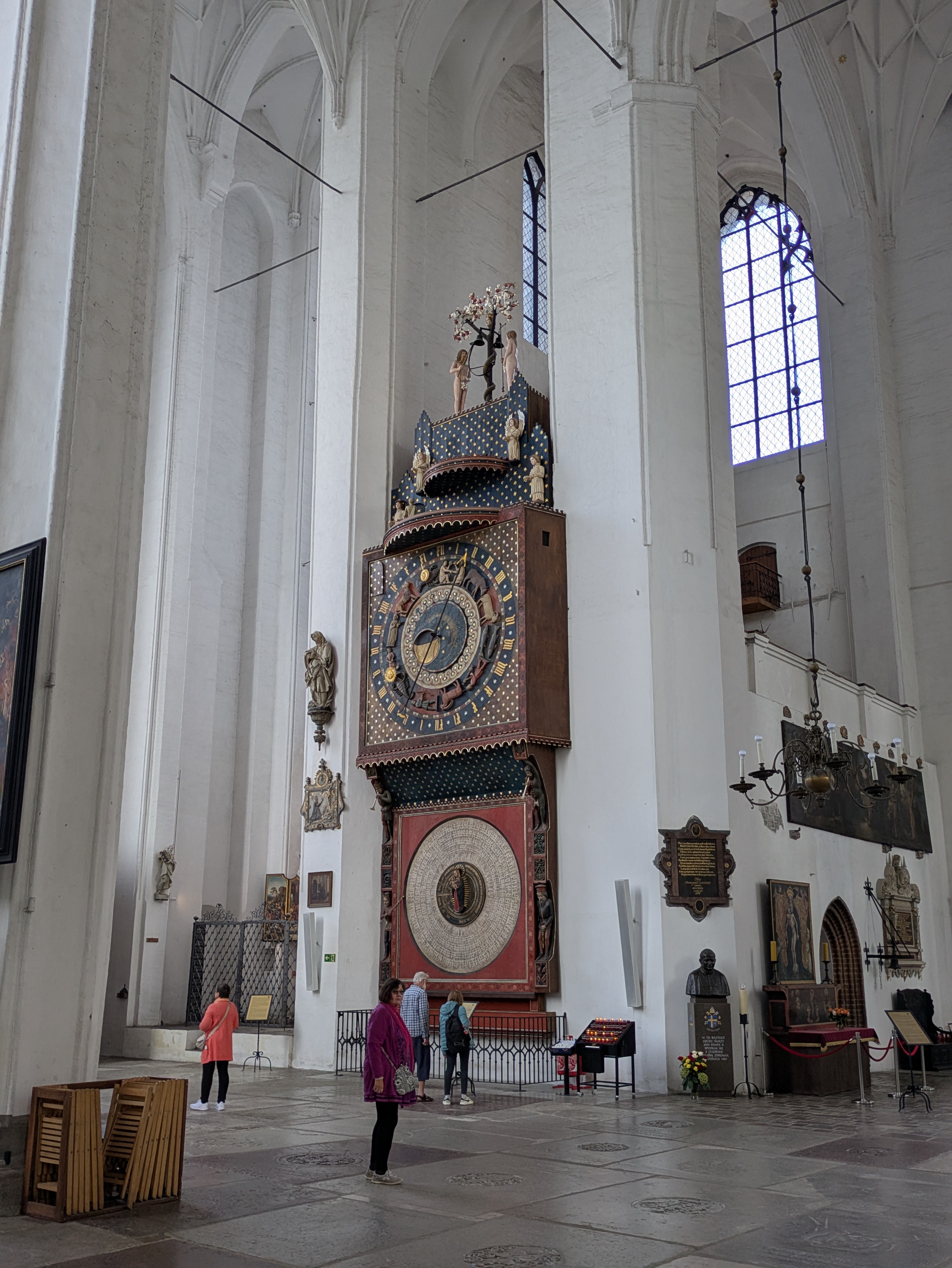 The size of those windows floods the nave with light and space, despite how densely packed those enormous pillars are. The most impressive of St Mary’s internal features is the 15th Century astronomical clock, an audacious feat of precision engineering, animating the time, date, zodiac, and Saints’ days through a series of illustrations and marionettes. Elaborate and intricate, the clock stands in contrast to the solid simplicity of the church.