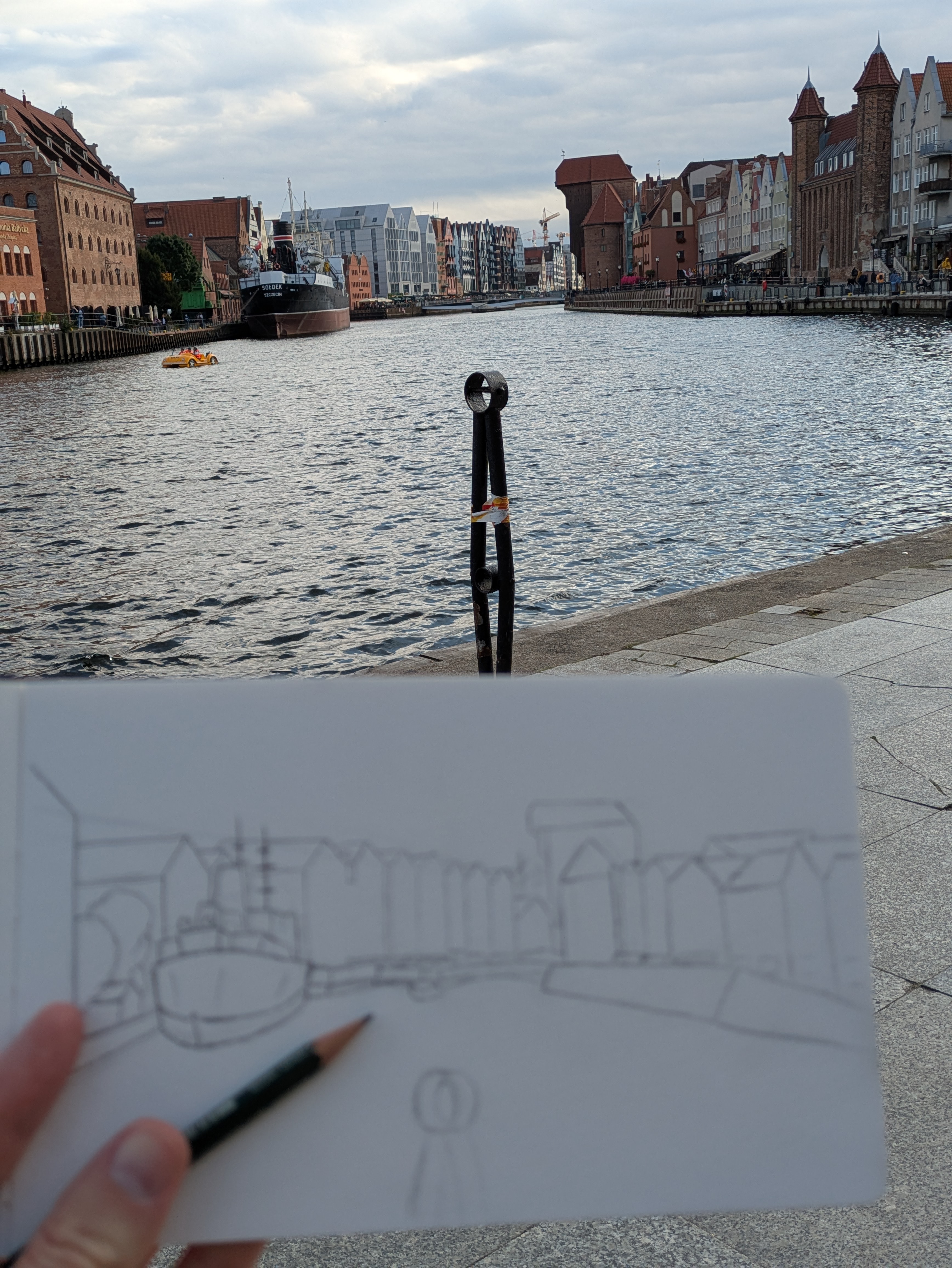 Before heading back into Gdańsk, I find a beachside bar for a quiet pint and take out my sketchpad (“hide on the promenade, etch a postcard”), tinged with a hint of regret that I’ll soon be back among the multitudes on Długa.